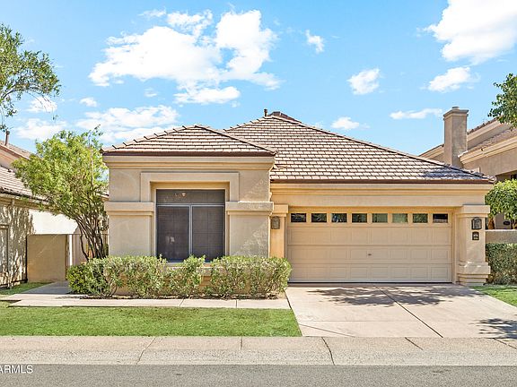 New Roof and New Trane HVAC System! Fabulous Gainey Ranch single-level home with NO steps! Enjoy Scottsdale's finest lifestyle in highly sought after 24-hour guard-gated Gainey Ranch with resort style amenities like Golf, Tennis, Pickleball, Heated Pools/Spa, and a state-of-the-art Fitness Center! This 3 bedroom 2 bath home has a wonderful open floor plan with tons of natural light! Upon entering, you'll experience 12ft ceilings, a spacious living room w/fireplace and offset dining room! Kitchen features large island with Silestone Quartz countertops , gas cooktop, and double ovens! Spacious primary suite with fireplace, separate tub and shower, and large walk-in closet. This home is a short walk to the heated community pool/spa! New garage door opener with key pad The HOA fee also includes cable TV, high-speed internet, and front yard maintenance.