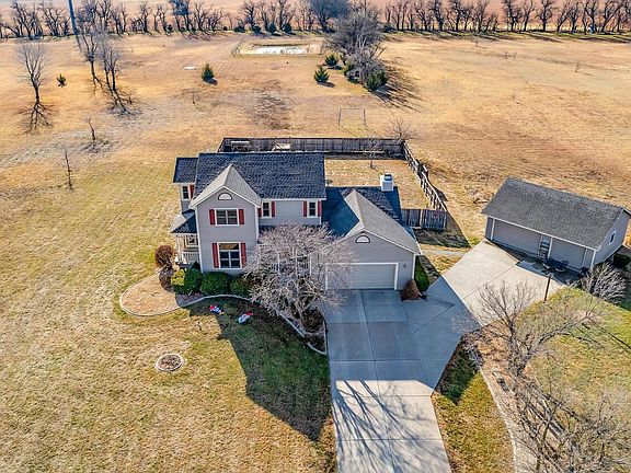 A Little Slice of Country in the City! Location, Location, Location!!! Fantastic Home on 4.99 Acres Will Make a Great Holiday Home for that Special Someone! Looking for More Garage Space? 2 Car Attached Garage & 3 Car Detached Garage*Cute Front Porch + a Side Porch to Sit & Enjoy the Large Yard*Kitchen is Gorgeous with New Soft Close Cabinets, New Quartz Counter Tops, New Pretty LPV Floors!! Matte Black Appliances Stay & There are 2 Pantries One w/ Slide Out Shelves*2 Eating Spaces, One w/ Large Bay Window + Formal Dining Room*Hearth is Truly the Heart of the Home to Enjoy Family Time with Vaulted Ceilings and a Wood Burning Fireplace with a Blower, Painted Shiplap*Living Room Allows for Large Gatherings & Serves as a Multi-Purpose Room*Main Floor Laundry with a Half Bath Newly Painted Cabinets with Pretty Quartz Countertop*Spacious Master Bedroom with Walk-In Closet*Master Bath with Jetted Tub & Separate Shower & Double Vanities *The Bedrooms are All a Great Size with Ceiling Fans*Bathroom in the Upstairs Hallway is Extra Stylish and a Complete Remodel with Subway Tile Shower, Design Tile Floors & Quartz Countertop with New Cabinets for Storage*Large Basement has a Huge Family Room with Built-In Shelves and a Game Room, Full Bathroom & An Option to Finish another Bedroom*Replacement Windows Upstairs & in Kitchen above sink*All New Interior Doors & Trim On the Main Level*All of the popcorn ceilings were removed from main floor & upper level*Zoned Heat & Air for Efficiency*Up to 2 Horses Allowed*Lots of Places to Store Your Boat, Camper & Toys! You Will Love the Easy Access to 254 and 96*Land is Marked with Posts*Be Sure to View the Virtual Tour