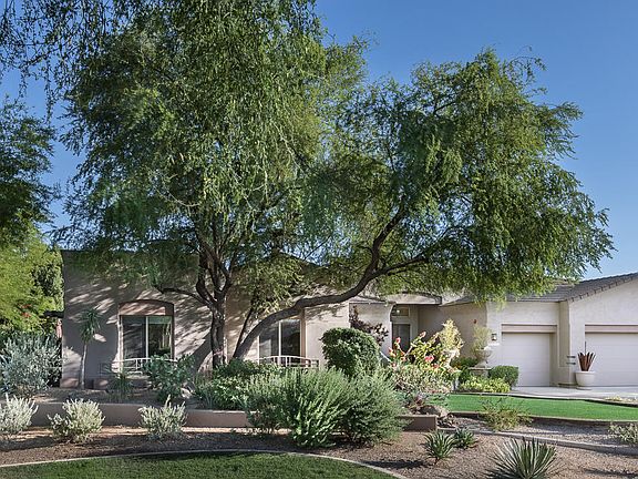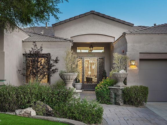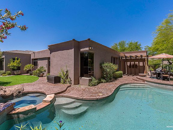 Welcome to the definition of custom elegance in Pinnacle at Grayhawk. This home showcases the finest aspects of family & resort living. Situated at the end of a cul-de-sac siding to a common area & grassy parks, this highly finished home includes solid Alder wood doors, a light & bright kitchen that opens to a breakfast room/family room, & ideal design for entertaining with expansive windows allowing natural light to bounce into the home. The timeless finish of custom reclaimed wood flooring with inlaid stone, herringbone and classic patterns flow through the home, offering custom details including a 400 wine bottle storage with wrap around bar, custom built-ins & cabinets, premium appliances & granite counters throughout. The flex room & resort backyard with custom pergola of reclaimed wood, low maintenance turf, private pool & spa, raised patio area & lush vegetation are ideal for a family friendly home located in a gated neighborhood offering community tennis courts, trails, parks & playgrounds.