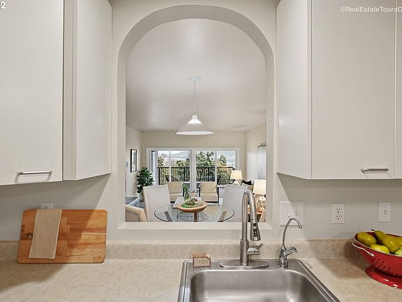 View property!Commanding river, bridge, city and west hills views! Steps away from all the charm of St. Johns yet tucked away on eight private acres owned by the Edgewater community. Great room concept w/appointed dining and eating bar. Primary suite w/double closets & full bath. Second bedroom or office. Spacious outdoor patio lends to summer entertaining. Enjoy swimming, gardening, library, party and meeting rooms. Carport space included and two storage spaces. No Rental cap.