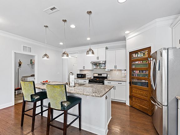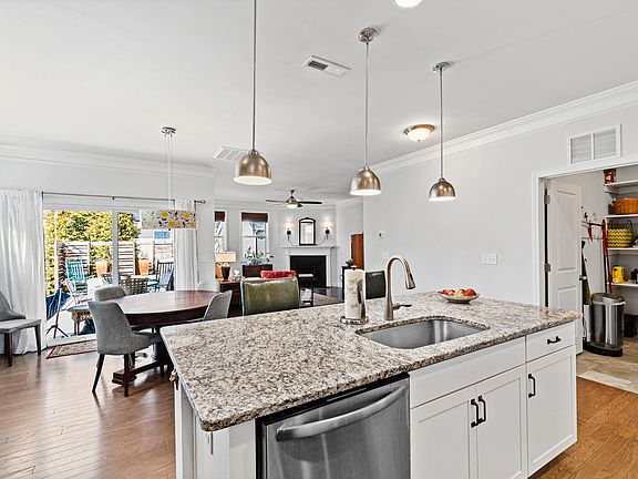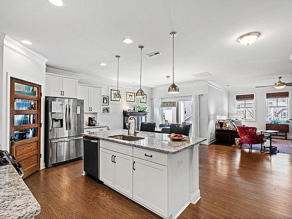 A must see! Beautiful transitional home with front porch opens to a formal foyer and has wood floors throughout most of the main floor. Two additional bedrooms on the main floor with a full bath. Formal dining room leads to gourmet kitchen with center island, SS appliances, and granite countertops. A high-capacity hood was installed over the stove and is vented to the outside of the house. Kitchen includes contemporary features blended with the past. A 1930's wooden door opens to a redesigned pantry. Looking down on the breakfast area are three stained glass windows that were salvaged from old houses from the United Kingdom. Breakfast area opens to large family room warmed by fireplace. Outside patio with deck and garden area. Main floor primary room with huge walk in closet, separate bath and shower and dual sinks. Huge upstairs bonus room with new carpet and an additional bedroom all with newer carpet and a full bath. The two-car garage has been outfitted with numerous storage options. Above the built-in work bench are several shelves to keep frequently used items. Additional shelving can be found on the back wall in a hidden closet type area. Community clubhouse and pool included with HOA fees!