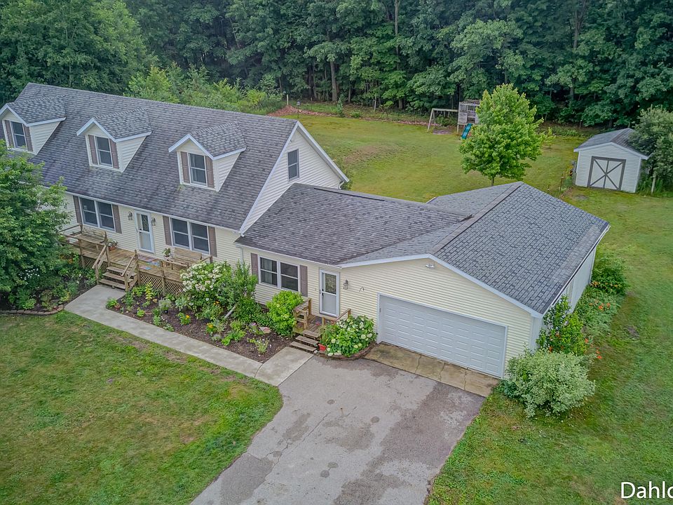 Follow the tree lined driveway back to this amazing home on 10 acres. When you walk in the front door, you will greeted by an open staircase, living room and formal dining room which the current is using as a family room. On the main floor you will also find laundry with a half bath, large family room, open kitchen with an island, den, master bedroom with a walk in closet and a second bedroom. The spacious second story has an open loft area, 2 bedrooms (one with built in bookcases) and a full bathroom. This home has a very efficient Geothermal heating and cooling system. Outside this wonderful home you will have tons of space for all your hobbies whether it is gardening, walking in the woods or sipping coffee on the deck. The possibilities are endless!