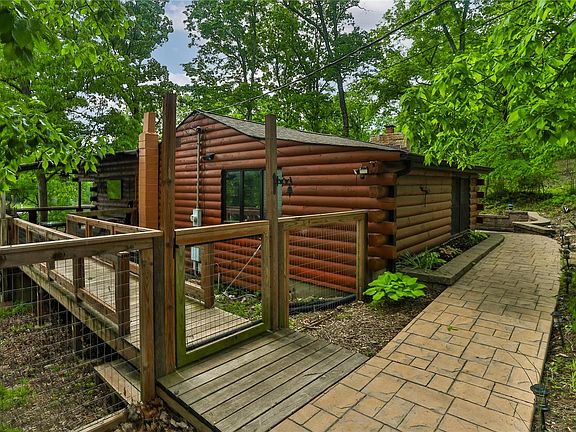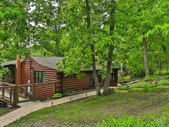 Cozy Lake Front Cabin! This 2 bedroom, 1.5 bath home has been completely updated. Living room features log exposed walls, wood plank ceiling, ceramic tile flooring & wood burning fireplace. French doors lead to large multi-level deck that goes to a wrapped covered porch overlooking the lake. Kitchen is complete with custom cabinets, stainless steel appliances w/double oven & center island w/breakfast bar. Separate dining room & large walk-in pantry. The master bedroom is ample in size with a walk-in closet that leads to a master half bath & sliding glass door out to the lake view back porch. The 2nd bedroom has a large closet & built-in bookcase. Laundry closet for stackable washer/dryer in hallway and a full bathroom. Detached 2 car garage with game/recreational room and shed offering plenty of storage. Back covered patio leads to the unfinished cellar and you are steps away from your private dock on the lake. This unique home will not last, don't hesitate to see this one today!