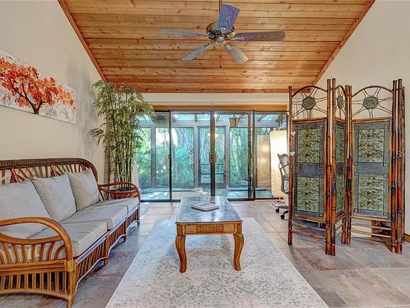 Enjoy Maintenance free living! This rare and recently upgraded one story first floor villa with dedicated carport is a tropical oasis and is walking distance to Palma Sola Bay! Recent updates include new AC 2019 with transferable warranty, Replaced pipes with CPVC Flowguard Gold hot and cold water system throughout entire house. Newly renovated guest and master bathrooms. New lanai roof and newly tiled lanai floor. With nearly 1250 sq ft under air on just one floor, this large 2 bedroom 2 bathroom unit feels bigger than it is with tongue and groove vaulted ceilings and lush views of the large Banyan trees visible from the living spaces. The kitchen is light and bright and the living space is clean and open with travertine floors throughout and a neutral palette allowing you to move right in. Walk out the sliders to enjoy the screened in Florida room with abundant lush views and privacy. This sought after complex has a heated pool, hot tub, sauna, tennis and shuffleboard. Located within just a couple minutes of Florida's top beaches, Anna Maria Island, and walking distance to Palma Sola Bay for Kayaking, fishing, and horseback riding. This would make a great full time residence or Seasonal escape. Grab your slice of paradise while you still can!