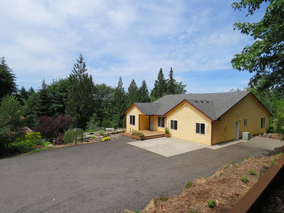 Secluded Ranch on 5 Acres located at the end of private a Rd! 5 Stall Board & Bat Barn, w/insulated tack room, hay loft, auto watering system, & rubber mats! Small pea rock turnout adjoining barn, larger dry lot, small pasture & Year round Creek. Spacious back & front deck overlooks a gorgeous plant filterd pond! Spectacular landscaping, Fruit trees, garden, fire pit! Unfinished 24x36 Shop w/12' x 36' lean tos has 200amp's & RV Hookup!