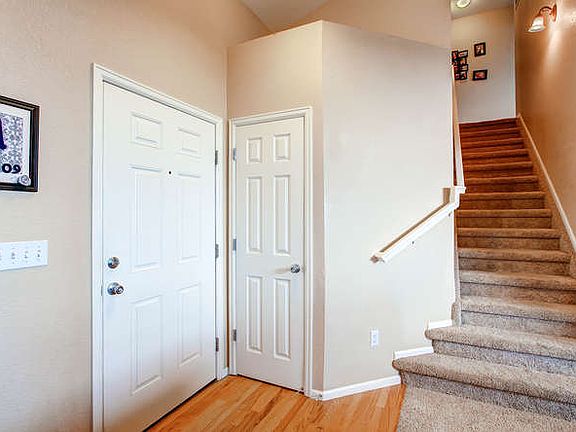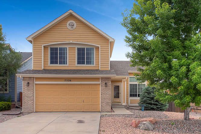 This two story home is located in the desirable Heritage community just minutes from Fort Carson. Upon entry you are greeted by vaulted ceilings, a large living room with built-ins and plenty of natural light. Off the living room is an eat in kitchen with an ample amount of counter space and a walk out to the back yard. The main level also includes a half bath and laundry room access. The upstairs offers three bedrooms, a full bath and a master adjoining bath that includes a double vanity and large walk in closet. The basement has a fantastic family room and offers a walk out to the fully fenced backyard! This home is located close to shopping, schools, all military installations and is within a stones throw to the local park.