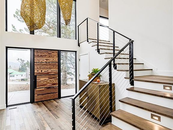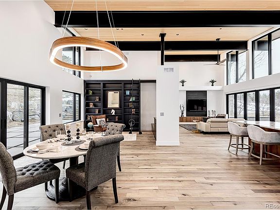 Luxurious luminosity reigns in this custom-built Panorama Park residence. Modern exteriors and captivating mountain views set the stage for elevated living as a grand foyer beams w/ a custom chandelier. Elegant details flow throughout a gracious layout, including custom millwork and lofty vaulted ceilings. The home chef’s workspace awaits in a stunning kitchen complete w/ a vast center island and high-end appliances. The lines between indoors and out are blurred in a living area as a wall of windows and accordion glass doors slide open to reveal an expansive patio w/ an outdoor kitchen. Tucked away for privacy, a separate floorplan flaunts a primary suite retreat encapsulated by a home office, gym and spa-like bath w/ a walk-in shower and soaking tub. Ample storage is found throughout including in a laundry area and mud room. Pet owners delight in a secured outdoor dog area w/ turf and a dog bath in the garage. Solar energy and a geothermal heating system complete this modern escape.