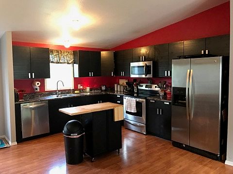 - RoomKitchenFeatures: Microwave, Vaulted Ceiling(s), Laminate Flooring