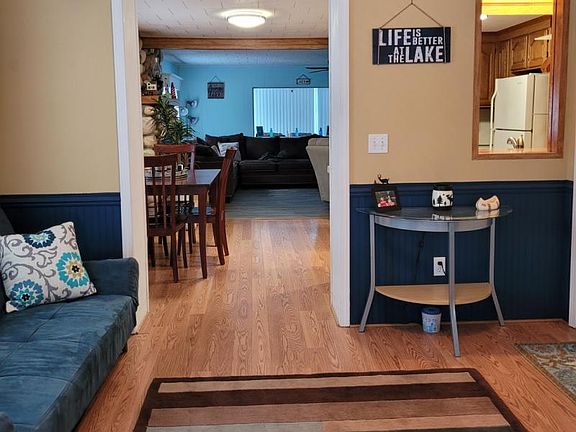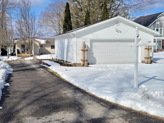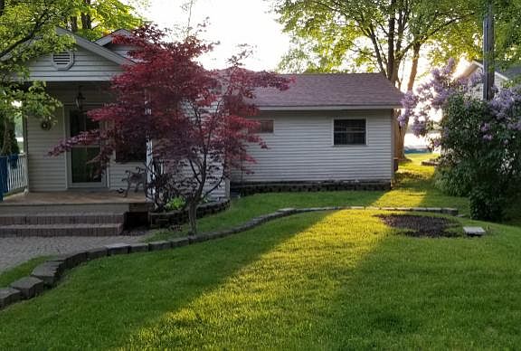 Fantastic opportunity to get your summer rolling! Home is being sold furnished (some exclusions) just in time for summer fun! 2 bed 2 bath waterfront home. Lots of space for friends and family to stay. Back entrance (10x13) was added in 2004 and features full bath, utility closet, washer and dryer, and den. Sun porch (26 x 7.6) is 4 seasons with new Anderson windows and flooring added in 2002. Beautiful fieldstone gas fireplace in spacious (18x13) living room. True cooks Kitchen (13x10) with island and lots of storage. Bedrooms measure 10 x13.9 and 11x 8.5. Tons of updates! New garage roof 2016, New roof on home 2021. Central air 2020. Crawl encapsulated 2022, New flooring in living room and sunroom 2022. New water heater 2020. City water. Sale includes 40' Aluminum roll in dock. Plus a 24x24 Garage for all your toys!!! Transaction also features extra lot in Lakewood Shores so you can enjoy all amenities that are within walking distance. Home is suitable for year-round living.