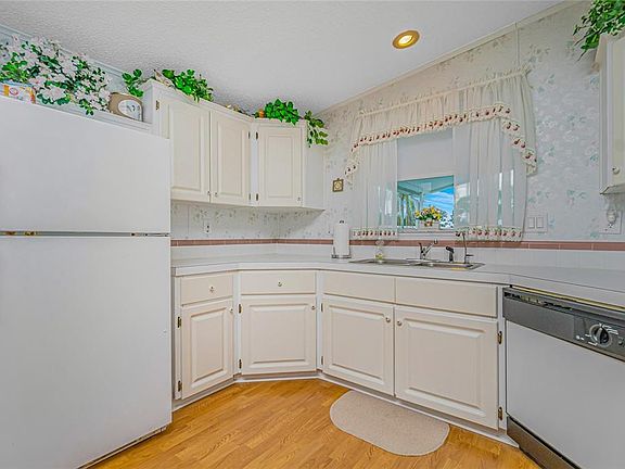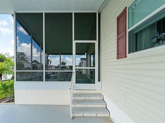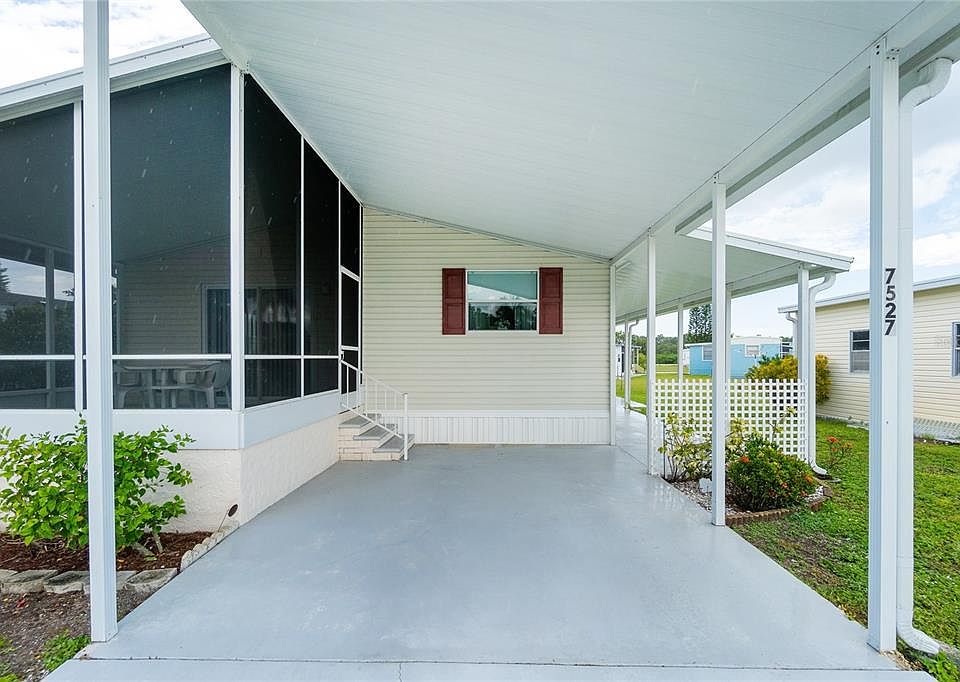 Spacious 2 bedroom, 2 bath in the desirable waterfront community, Village of Holiday Lake. This open floor plan features a large living room, kitchen with breakfast bar, separate dining area, 2 bedrooms and an inside laundry room. Plenty of natural lighting throughout, cathedral ceilings and ceiling fans. Screened Lanai and a storage shed. The Village of Holiday Lake residents have a great sense of volunteerism and of being a large family. The village boasts 20+ boat slips. Beautiful pool area with 2 pools )1 heated) and BBQ section. There is always something going on for everyone at the large recreation hall with full kitchen, craft room, laundry facility along with areas for woodworking, tennis, shuffleboard and more. Golf Carts welcome. Would make a great rental or your winter get away spot. The Village is situated on a canal which provides access to Charlotte Harbor and the Gulf of Mexico by boat.
