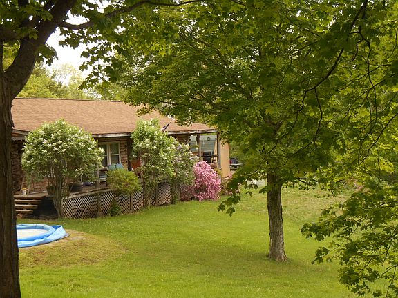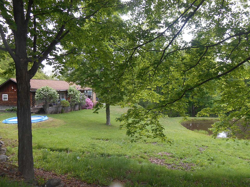Check out this authentic yellow pine log home on a nice country road situated on 6.4 acres of beautiful property. This home is accented by a big beautiful pond filled with goldfish and is as deep as 12 feet in the middle. Nice parquet and hardwood maple floors are featured throughout this home. Sit out and relax on the full front covered porch overlooking the nice pond, mountain views and the sights and sounds of the Great Northern Catskills. Open log beams, full basement, and so much more. Close to all amenities: shopping, dining, golfing, hiking, festivals, zipping, antiquing, skiing, snowboarding, snowtubing, and more!