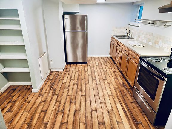 Spacious daylight basement unit in vintage craftsman style house Private entrance at the side of the house with Plenty of garden space Lovely old neighborhood with older Portland homes old growth trees lining many streets in the growing vibrant neighborhood of Mt Scott-Arleta/ Foster-Powell Half a block from Mt Scott Park and the Mt Scott pool-community center (currently undergoing extensive renovation but will open well improved mid year) Two blocks from the vibrant Portland Mercado... ...also shops and cafes on SE Foster Wood tile floors throughout Pratt & Larson tiles in kitchen. Washer and dryer in shared space in the basement. *House is being rented out as a duplex. We prefer a one-year lease, and then month-month then after. Contact us, Patrick/Andrew, by email for an appointment to view. Thank you for your interest. Owner pays for all utilities (water, garbage, electricity/heat) for a flat rate of $100/month. Total monthly rent is 1150 with all utilities included. One year lease preferred for the first year then month to month thereafter.