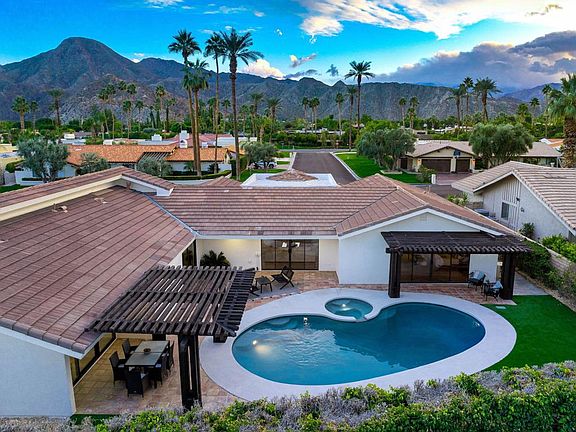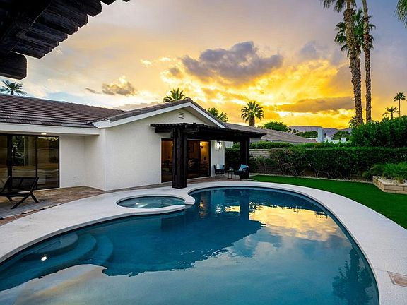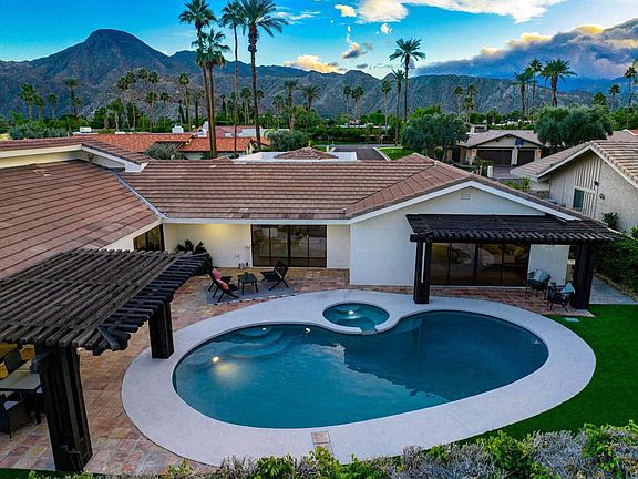 Immaculate remodel with dramatic price improvement: $ 250,000 drop--with over $500k upgrades on this 4Bed | 3.5 bath home | 3,707 sq. ft.This Modern luxury with outstanding location & exceptional value is a fully renovated, reimagined design inside & out and has extraordinary southern Mount Eisenhower views on the prominent south side of HWY 111- Indian Wells in the quiet Non-HOA desirable neighborhood. The floorplan is open and spacious with chic, cozy modern finishes, new custom cabinets, Porcelain Plank flooring throughout, Chef's kitchen with a granite top island 8'' x 10, a re-designed bar, Custom solid wood doors, Italian Design stainless steel appliances with a large Pantry. The Primary Suite is spacious with backyard access to the pool and spa, a 67' Freestanding soaker tub, & endless walk-in custom closets with a w/built-in dresser bank. At the home's entry is a casita en-suite bedroom and en-suite bath. Formal living room | Dining room with floor-to-ceiling sliding door| Casual Living room with Napoleon Alluravision electric fireplace, two en-suites with connecting en-suite bath & powder room. Relax in the Zen-like tranquil backyard, an indoor-outdoor living concept with fresh new landscaping, lounge by the pool and spa, or dine out under the Pergola. As an Indian Wells resident, included is complimentary access to the Hyatt Regency Indian Wells Resort & Spa gym. Enjoy the special privileges at the Indian Wells Tennis Gardens & world class golf! Call Irene today.