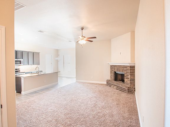 Open concept 3 BD 2 BA, 10 foot ceilings in entry, master bedroom and main living area. Brick on four sides ranch home. Includes covered patio.
