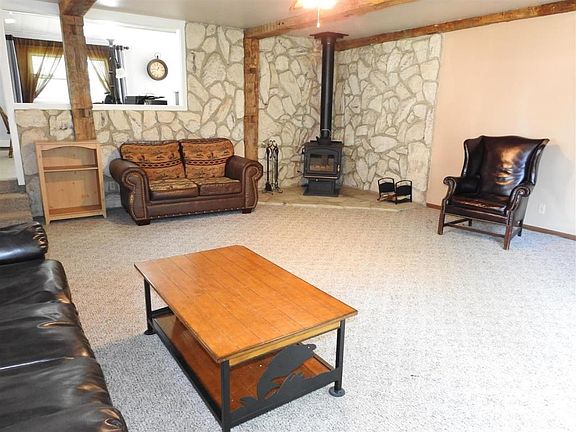 Peaceful. Quiet. Relaxing. Garages. Drive down the long driveway to this secluded home on 3.51 acres. The huge deck is great for entertaining or simply relaxing. Home features a large living room with a wood burning stove, large master bedroom with double closets, formal dining room, kitchen with ample cabinet space and breakfast bar and a block basement with outside access. Garage/outbuilding space includes a 2.5 car garage with a 24X17 shop on the back. 2 storage sheds and a steel building for animals or storage. Updates include metal roof with a lifetime warranty, garage, addition and deck.