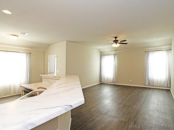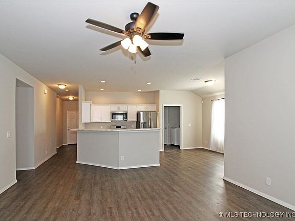 Welcome home! This move-in ready 3-bedroom, 2-bathroom gem located in beautiful Conrad Village is ready for you. This home offers a perfect blend of comfort and style, with spacious rooms and plenty of natural light. This home has several upgrades such as new blinds on all windows & garage door opener in 2023. New privacy fence w/steel posts, upgraded ceiling fans, master closet, laundry room, pantry shelving & kitchen hardware upgrades in 2024. 2 ring doorbells already installed & ADT touch screen panel, door/motion sensors & mounted google nest backyard camera ready to go should you decide you want that service. The heart of the home is the kitchen, featuring stainless steel appliances, convenient counter-top seating, and a cozy breakfast nook. Plus, the refrigerator is included! The open layout flows seamlessly into the living room, making it ideal for entertaining or simply relaxing. The primary bedroom offers a peaceful retreat with its own private bathroom and a walk-in closet with built-in shelving. You'll love the spacious laundry room, complete with a washer and dryer. Throughout the home, neutral paint and countertops create a clean, welcoming atmosphere. Step outside to enjoy the covered patio and fully fenced backyard—offering privacy and a great space for outdoor living. Located within the Bixby School District, this home is not only beautiful but offers fantastic location and schools. Don’t wait—schedule a tour today!