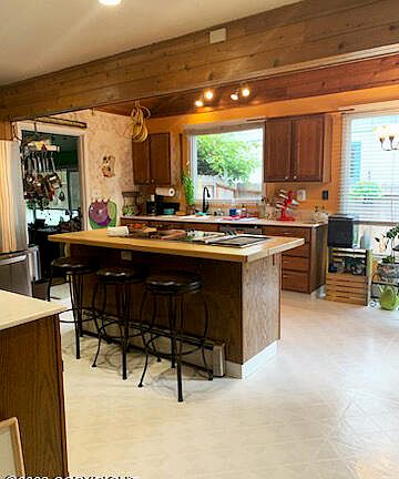 Large open living/dining/den/office area w/2019 Sq Ft. Oak kit w/good storage., pantry in laundry rm. South facing deck. Bedr ste w/cedar walk in closet & private bath. Beautiful, perennial gardens, pergola & new grnhouse 2019. Oversized dbl gar. New Anderson windows 2015, Hall bath remodeled 2019, furnace updated 2021, new gar dr & opener 2015, roof approx 10 yrs,. TLC needed - Buy ''AS IS''.