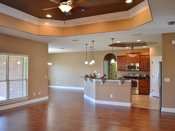 Spacious and beautiful, this waterfront home on .9 of an acre offers quality construction. From the elegant archways and tray ceilings to the hardwood floors and granite counter tops you will appreciate the details in this home. Featuring 4 bedrooms and 3.5 bathrooms, this open floor plan home showcases a large living room with gas fire place, spacious kitchen with a large bar, stainless steel appliances, and hard wood cabinetry, breakfast dining nook, formal dining room and an office that could be used as a 5th bedroom because it has a closet. The first guest bedroom has an ensuite bathroom and walk in closet. The other two guest bedrooms share a hall bathroom. On the other side of the home is the master bedroom and master bath with double vanities, jetted tub and walk in shower.
