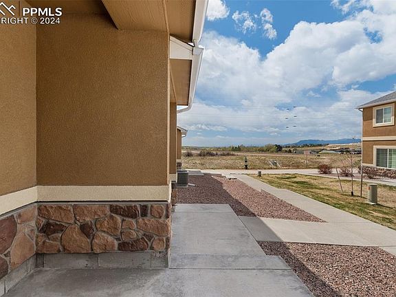 Welcome to this inviting corner unit townhome, where an open-concept design sets the stage for effortless living. From the kitchen's breakfast bar and pantry to the spacious dining area, seamlessly connected to the cozy living room, every inch of space is designed for shared moments and cherished memories. Retreat to the generously sized primary bedroom, offering ample space for relaxation and rejuvenation, complete with an en-suite bath and walk-in closet. Upstairs, the second and third bedrooms share a full-size hall bath, while the adjacent laundry room simplifies chores. Conveniently located just minutes from military installations and a myriad of shops, restaurants, and entertainment options along the bustling Powers corridor, this home epitomizes accessibility. Nestled as an end-unit, relish in added privacy and a heightened sense of exclusivity. The oversized garage effortlessly accommodates your vehicles and storage needs. Welcome home to a lifestyle where comfort, convenience, and community seamlessly intertwine.