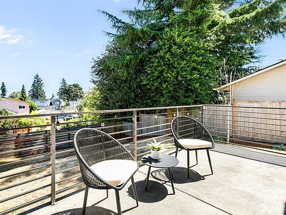 Modern living in this bright West Seattle home featuring a rooftop deck w/ panoramic east-facing views of Mt. Rainier, 12-ft ceilings, & open floor plan perfect for entertaining. 3 bedrooms, flex office/guest room w/ custom Murphy bed, & 3 patios. Chef’s kitchen w/gas cooktop, stone counters, & breakfast bar. Updates:Engineered hardwoods, mini-split AC, new roof + composite deck, custom pantry, powder room, & laundry upgrades—over $125K in improvements. Spacious primary suite w/ walk-in closet, spa-inspired bath, & private covered patio. Fully fenced yard w/ raised garden beds. Just 1 block to rapid bus lines to South Lake Union. 2-car garage off alley. Convenience, comfort, & access to Seattle & Bellevue in under 20 min. Pre-Inspected.