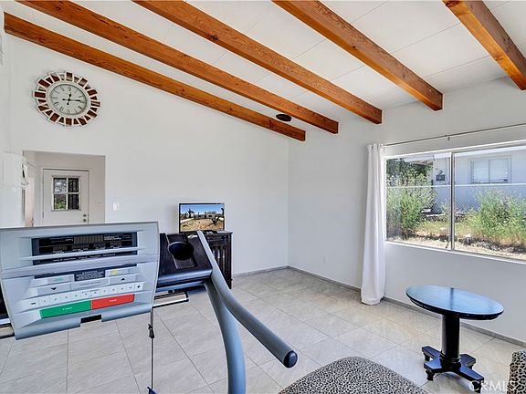 Bright and open! This adorable mid-century home is waiting for you! Gorgeous original wood beams adorn the high ceilings in the living room and kitchen. Tastefully remodeled with all tile floors, new granite kitchen countertops, new light fixtures, and new bathroom! 2 bedrooms, 1 bath fenced home with detached garage. The covered back patio is great for cooking outdoors and enjoying the spacious backyard. Located close to shopping and only minutes away from Joshua Tree National Park entrance. Easy commute to Palm Springs. Make your appointment today to view!