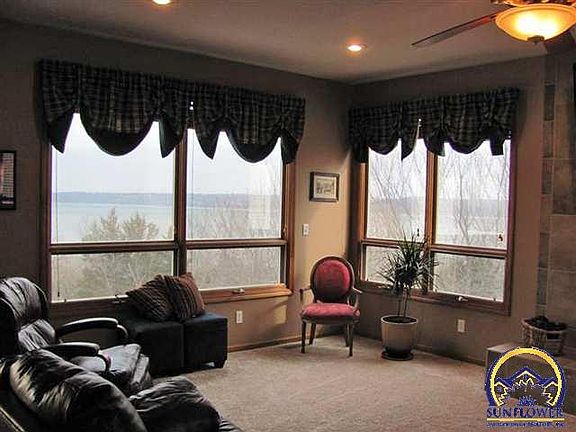 Gorgeous home w/stunning lake views from main living areas & every BR. Spacious master suite w/jetted tub & big closet. A kitchen where all will gather. Cooktop, sink, faucets, quartz counter top all new in las 2yrs. DW brand new, 10&12'ceilings, fireplace, sun room, back windows tinted for cool comfort, solid core 6 panel doors, surround sound, alarm, laundry up & down, concrete basketball court, deck, patio, dry sauna.