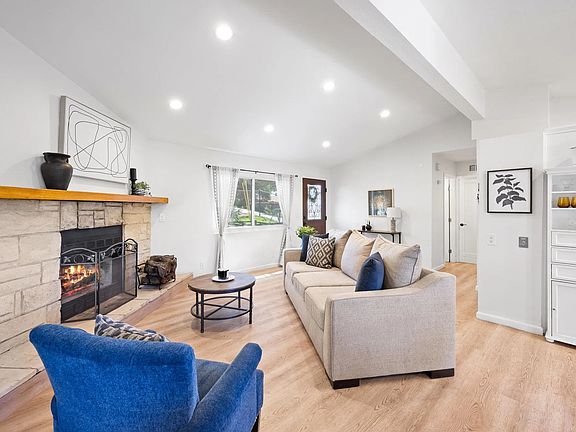 Welcome to your new home in the picturesque mountain community of Pine Valley, CA. This beautifully renovated 3-bedroom, 2-bathroom residence offers 1,344 square feet of thoughtfully designed living space on just over a quarter-acre lot. Updated in 2022, the home has a fresh, contemporary feel with vinyl floors, vaulted ceilings and recessed lighting. Cozy up by the fireplace in the inviting living room, perfect for those chilly mountain evenings and the central AC keeps you comfortable year-round. Step outside onto the expansive back deck and immerse yourself in the breathtaking views of Mount Laguna. This is more than just a view; it's a daily reminder of the natural beauty that surrounds you, making outdoor gatherings and quiet mornings with a cup of coffee truly special. The farmhouse kitchen sink, positioned in front of a large window, offers rolling hill vistas, turning meal prep into a scenic experience. The primary bedroom is a private retreat with an en-suite bathroom and walk-in shower, offering a luxurious sanctuary for relaxation. Your new home also offers a lifestyle of convenience and security. The fully fenced property, with a brand-new chainlink fence, ensures privacy and safety for your loved ones and pets. There are several peach and apple trees to snack from on the property. The attached 2-car garage and easy access to the 8 freeway make commuting and daily errands effortless. Pine Valley is more than just a location—it's a community where clear air, friendly faces, and a genuine sense of belonging await you.