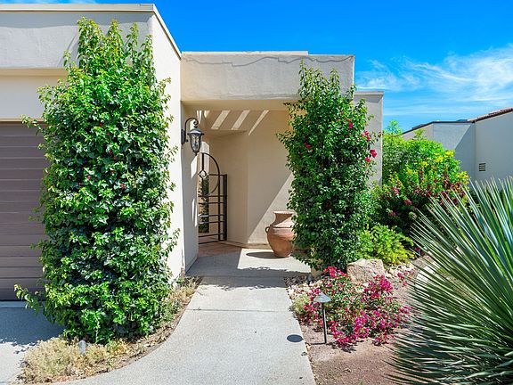 Start planning your getaway and indulge in this exceptional desert home that epitomizes luxury country club living. No detail has been overlooked in this elegantly designed and expertly renovated property. Spacious, welcoming rooms with an open-plan layout are perfect for entertaining. Stacking sliding doors seamlessly blend indoor and outdoor spaces, Artfully chosen furnishings are both sophisticated and calming. The home features serene wood plank tile floors, clean architectural lines and soaring ceilings. Rich textures and a harmonious color palette enhance the aesthetic appeal, creating a warm and inviting atmosphere throughout. The gourmet kitchen boasts generous space, rich-finished cabinetry, quartz countertops, and top-of-the-line appliances. The primary suite is a sanctuary, offering a spa-style bath, dual vanities, and a generously sized walk-in closet. The guest bedroom in the main house and the private casita are both spacious and beautifully appointed. Create magical memories with family and friends on the back patio just perfect for al fresco dining and socializing. Take a dip in the sparkling spa while marveling at the lush fairway, western mountain, and lake views. This one-of-a-kind home is your perfect desert retreat.