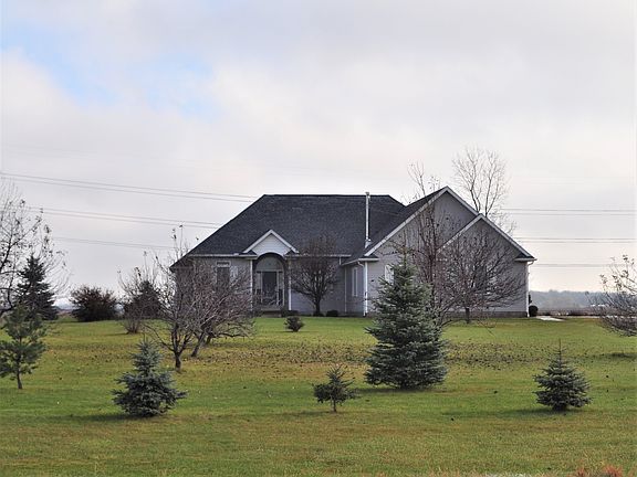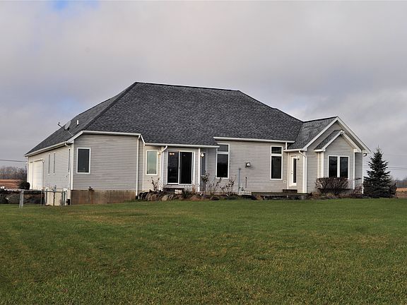 Immaculate custom built 2400 sq ft ranch built in 2002 with open concept, 3 bedrooms, 2 baths plus office/library sitting on 3 sprawling acres with a pond & orchard! This home is extremely well cared for and move-in ready. High ceilings with recessed lighting, large open foyer, dramatic stone fireplace, master bedroom with tray ceilings and large master bath, eat-in kitchen and formal dining area, full basement plumbed for 3rd bath, 3.5 car garage, Geothermal heat. 2 fireplaces, jetted tub, hardwood floors in foyer, hallway, kitchen and nook, award winning Armada schools. Bonus room storage over garage. This home is a must see!