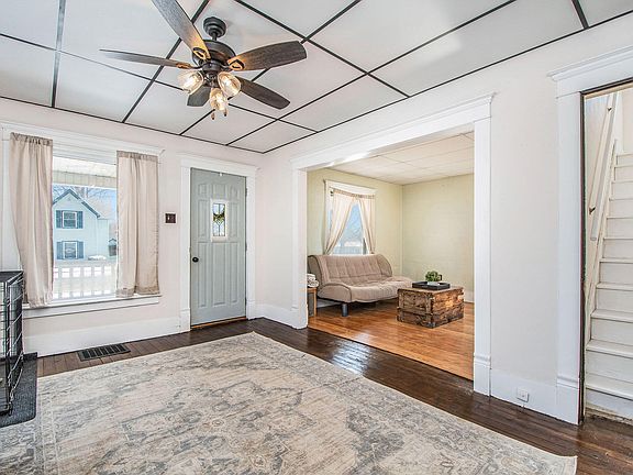 Say ''Hello!'' to this 4 bed, 1 bath home in downtown Lake Odessa. This property backs up to Lake Odessa Village Park, and is just steps from Jordan Lake as well as shops and restaurants. The large front porch leads into a spacious living room, featuring original wood floors, stately original trimwork, and huge windows. Just off the living room is a light-filled sitting room perfect for an office or TV room. Moving through you'll find a dining room, long galley kitchen, and a spacious enclosed back porch. Off the kitchen is a large bonus room with a lovely bay window. This would be the perfect space to gather and entertain. A large full bathroom with laundry in the closet completes the main floor. Upstairs you'll find plenty of charm with original trim, large wood doors, built-in linen cabinets, and an exposed brick chimney! 4 sizable bedrooms can be found on this level, 2 of which have updated electric, drywall, and paint. A tall privacy fence surrounds the spacious backyard and an oversized 3-stall garage completes the home. Water heater replaced in 2020. This property is filled with potential and is just waiting for your finishing touches! Schedule your showing today! Any and all offers due by 10am on Tuesday, March 21.