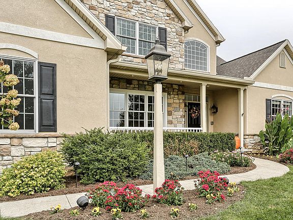 Gorgeous 4 Bedroom, 2.5 Bath, home w/ 1st floor master suite, on-site finished hardwood floors, Geothermal heating, Custom moldings throughout home, Kitchen w/ Cherry Cabinets, granite counters, Large Island w/ Bfast Bar & Eat-In Breakfast area. 0.88 Acres of level yard w/ professional landscaping & patio, backs up to preserved farmland. 2 Car attached garage & 4 car detached (24x40) detached garage w/ 200 amp service and skylights. One of kind!