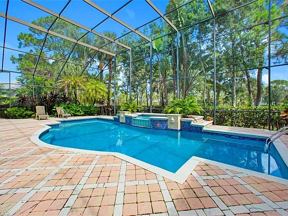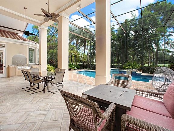 Spacious Audubon Golf & Country Club home with fantastic golf course view on a large estate lot. Phenomenal location on a quiet cul-de-sac street, near the 2 clubhouses & with a premium golf course view. This 4,365 sq. ft. residence abodes incredible 26-ft. ceilings in the lofty great room invite in extraordinary natural light via stunning oversized windows & 10-ft. sliders to the screened deck with private lush landscaping, newly resurfaced pool, spa, new outdoor kitchen & pool. Private guest house poolside with full bathroom. Exceptional open & split bedroom floor plan with owner's suite offers His & Hers Bathrooms and Closets, one of which serves beautifully as an office. Gorgeous kitchen with SubZero fridge & Thermador cooktop, granite counters, spacious eat-in island & open dining room. North Naples's "Audubon Country Club" is perfectly located 5-min from Mercato & 5-min to SWFL's world-class beaches, with gated/guarded entry. Attention Golfers For an additional monthly fee, enjoy membership access to Audubon Country Club's championship golf course, tennis, pickleball, Olympic-sized pool & newly renovated clubhouse with dining & a 2nd brand new poolside club & cafe.