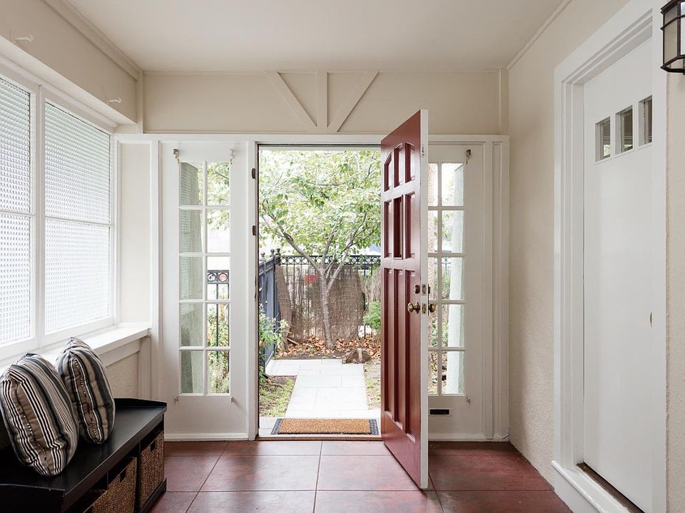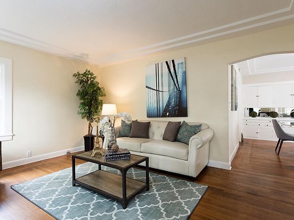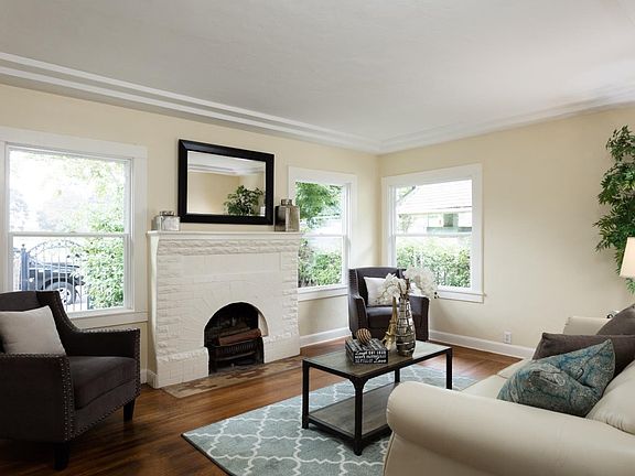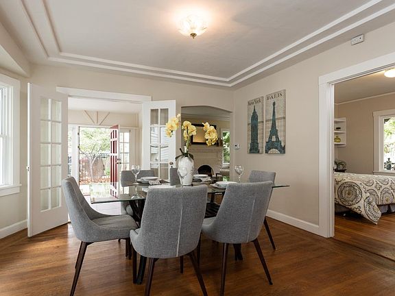 Vintage California bungalow style home on the main island of Alameda. Front gated entry courtyard, leading to a charming formal entry area. Formal living room includes brick fireplace. Entertaining dining room has built in cabinets and shelving; and leads to the eat-in kitchen, which has a pantry and door out to the fenced back yard. Separate office/nursery area. Private back yard patio and mature gardens. Centrally located cross from Washington Park; and a few minutes walk to stunning views of San Francisco and the Bay. Close to cafes, transportation, airport, hospitals and shopping.