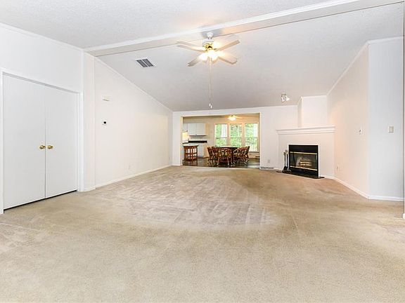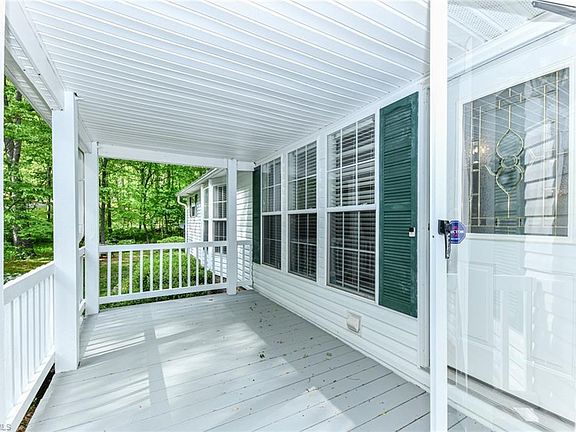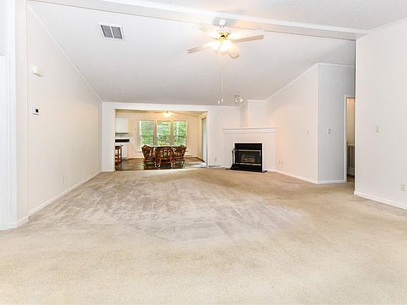 One story living on private 1 acre lot with mature, lush landscape. Rocking chair front porch will welcome you to this lovely home. When first entering you will find the open floorplan, perfect for entertaining, The large, great room has vaulted ceiling and fireplace and is open to the kitchen and dining areas for perfect flow. Granite tops, island and pantry in kitchen. Refrigerator remains. Very large primary bedroom offers His and Her baths and walk in closet. Bedroom 2 features private bath. Separate laundry room, washer and dryer remain. Private rear deck. Storage building. Heat pump approximately 6 months old. Leaf guard gutter system installed. See this home today! Won't last!
