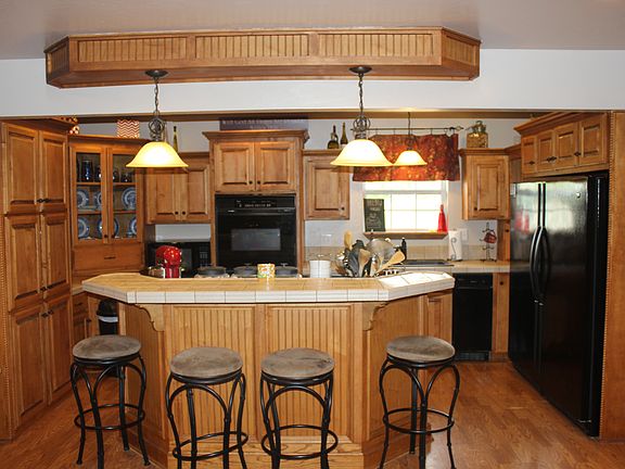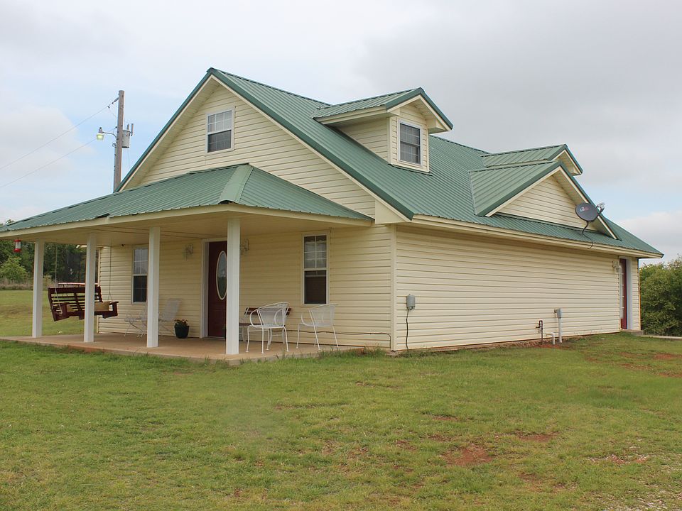 This place is definitely out of town! House sits on almost 10 acres (9.81) has a storm shelter, metal roof, heat pump and a couple of storage buildings. There is also a 16x16 separate office building. Wood laminate flooring and lots of Maple trim. Double ovens, side by side full size freezer and fridge will stay. We've always thought of the house as a 3 bedroom but the upstairs rooms are not separated by doors but there is a bathroom between. House faces the West and there is a nice view from the porch. Good quiet place to live, deer and turkey are a common site. We've enjoyed raising our family here but the time has come to get closer to town. Give us a call if you'd like to come take a look.