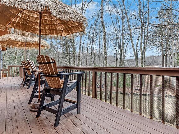 Experience The Hideout in this meticulously maintained 5-bedroom, 3-bath lakefront chalet, perfectly situated on Deerfield Lake and overlooking a roaring creek! Although there's no dock, you'll enjoy direct lake access - ideal for launching kayaks, canoes, or rowboats right from the shore.Spanning three fully furnished floors, this home is perfect for entertaining. The lower level features a family room, bedroom, recreation room, and a cozy ''creek'' room offering serene creek views and a propane stove. Upstairs, the main level features an open floor plan with a spacious eat-in kitchen, breakfast bar, and a tongue-and-groove sunroom overlooking the creek, plus a large deck overlooking the lake. Relax by the fireplace in the living room with its own lake view.Guests will appreciate the three bedrooms and full bath on the main level, along with convenient laundry facilities. Upstairs, the owner's suite awaits--complete with a loft, storage area, and a private primary bedroom with an ensuite bath.Outside, you'll find everything you need for the perfect lake escape: a 230-foot driveway for ample parking, a garage, a flat yard, and an easy path leading down to the shoreline. The home comes fully furnished and turnkey, equipped with 200-amp electrical service, freshly painted interior, upgraded bathrooms and public sewer & water. As part of The Hideout community, you'll have access to an array of amenities, including pools, beaches, a sports complex, fitness center, dog park, golf, skiing, tennis, pickleball, mini golf, on-site dining options, and so much more!