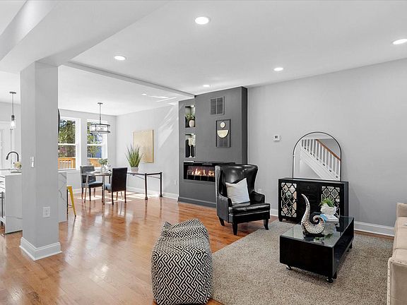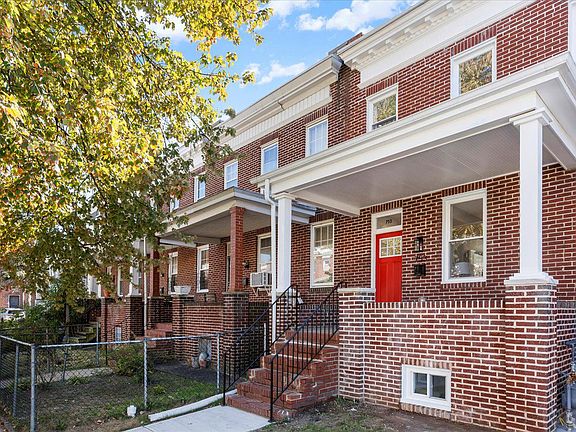 A beautiful transformation has taken place behind the doors of this 4BR/3BA brick Townhome located on a tree-lined street in Waverly. Make your way to the covered front porch and open the door into your new home. Once inside, notice the spacious open concept main floor boasting tons of natural light, hardwood floors, recessed lighting, and a soft color palette. The main offers a large living room and spacious dining room separated by a custom gas fireplace wall, and a stunning kitchen. The kitchen boasts plenty of cabinets finished with crown moldings, stainless steel appliances including a slide-in gas range, quartz countertops with a complimenting tile backsplash, and a deep stainless sink set into an island with waterfall edges, breakfast seating, and pendant lights. The hardwood floors continue onto the second floor which offers two sizable secondary bedrooms, a newly remodeled full bath, and a primary suite. The primary features a large closet and a private full bath with a beautifully tiled walk-in shower. The lower level is finished with easy care flooring, the fourth bedroom, a full bath with a walk-in shower, laundry, storage, and a large family room with a dry bar including a beverage fridge, and a walk-out to the yard. From the kitchen step through french doors to an oversized, newly constructed, wood deck that overlooks a semi-fenced yard with a patio and off street parking for two cars. This home is move-in ready and is conveniently located to shopping, restaurants, and commuter routes. ***This home qualifies for Baltimore City V2V Grant, Healthy Neighborhood Initiatives Special Financing, LNYW Grant, and all other Baltimore City grants.