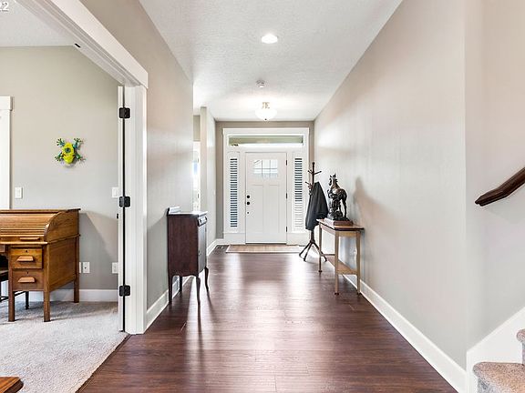 Beautiful 2016 built Craftsman in the heart of Carlton Crest. 4 bed, 3 bathroom home has open kitchen/living/dining w/stunning engineered wood floors, SS appliances, pantry, kitchen island, custom window treatments, gas fireplace & loads of natural light. Primary suite on main w/walk-in closet, double sinks, tile shower & access to patio. Bonus Loft/4th bed up w/full bath. Fenced backyard w/raised beds, covered patio, 3 car garage - quick walk to restaurants/tasting rooms in downtown Carlton!