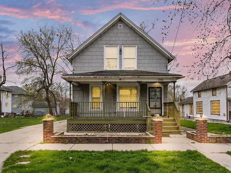 Charming Aurora home that is ready for you to make it your own! Accented with brick pillars and planters, the home welcomes you with a large front porch. Hardwood floors throughout. Original millwork and trim. 5 bedrooms and 2 baths. Large kitchen with built-in cabinet and separate pantry. Fresh paint, newer roof and boiler. Full unfinished basement. Enjoy the warmer months on the side deck over looking the fenced back yard and patio. Detached garage and shed. Walkable to Copley Park. Convenient to Shopping/Dining and interstate access.