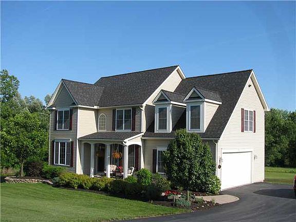 PC5062 Immaculate 4 bedroom 2 full & 2 half bath colonial set on almost 3 beautiful acres! Better than new--just bring your suitcase! Cherry 3-4-5 hardwood floors, maple cabinets, granite countertops, & stainless steel appliances! Second floor laundry and bonus room/4th bedroom. Fully finished lower level with about 460 square feet for famly room or play room or theater room! Walkout lower level included in total square footage. This type of setting rarely available in Fairport schools! You must see to appreciate!