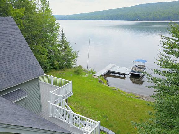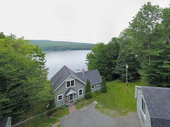 Get away from the city and live on one of Maine's favorite lakes - Great Moose Lake. Set on almost an acre of open lakefront, and boasting sunrise views, this 2003 contemporary cape offers single-level living with finished space on two other levels, in both a walkout basement and a spacious loft. 200-plus feet of waterfrontage is accessed from a gently sloping lawn and features concrete steps to the clear water and an aluminum dock, included for your recreational pleasure! Offered mostly furnished, this is the lake house or turnkey investment property you've been waiting for. 2 bedrooms, 2 baths and laundry are all on the first floor, the master featuring an en suite bath & walk-in closet. Rounding out the first floor, find a great room, cathedral ceiling, gas fireplace, oversized granite topped island and masses of windows facing the lake. A Fujitsu heat pump provides Air Conditioning and backup heat for the Radiant Floor heat found on the lower two levels. The 2nd floor loft, open to below, boasts built-in drawers, 3 twin beds, and is stubbed for heat should you decide to add a zone of baseboard heat. Enjoy movie night or a foosball game with a lake view in the lower level Family Room. The finished basement has its own half bath, storage closet, & a 2nd full size refrigerator. A detached 2-car garage, divided and insulated, is heated with a propane wall heater-will you use it as a workshop? Car storage? Studio? The 2nd fl of the garage is accessed by a full staircase and offers loads of storage space, as does the potting shed and partial crawlspace under the master suite section of the home. With a 5,000 Watt Standby Generator, granite countertops, a pantry with slide out drawers, & an oversized deck, this home has all the special amenities you need. Swim, boat, fish, snowmobile. Enjoy Maine, the way life should be. (Master BR set, outdoor furniture & personal items don't convey. Other interior furniture, dock, gas grill convey.) Offers due by noon Fri Aug 14
