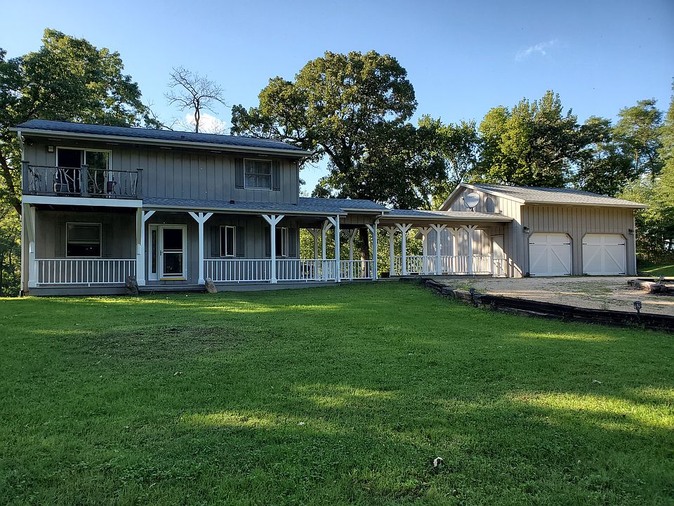 Great wooded property. Includes house + 5 acres. One acre pond is stocked with catfish, bluegill, Largemouth bass, and plenty of bullfrogs. Beautiful open concept floorplan with top of the line finishes. New flooring throughout the home with a fully finished basement that has a straight view to the pond. Plenty of wildlife filling the beautiful landscape. New black stainless steel appliances fill the kitchen. The home is filled with 54" windows and sliding patio doors to bring the outside inside with plenty of natural light. A open balcony looks over the family room and dining room.