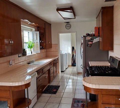 This Single Story on home located on a treelined street close to the Golf course features more than comfort, Southern Exposure on the Beautiful Pool in the backyard, Block wall for privacy, Gated Driveway. The Front of the home has Built in Flower Boxes, tiled walkway, fenced front yard with Front Bay Window, creating lots of natural light in this lovely well kept home 3 bedrooms/2 baths, separate laundry room w/pantry cabinets. Large Bedrooms, Large hallway linen closets w/built in drawers. Full size bath, and 2nd bath with shower easily accessed from pool. Eat-in Breakfast Nook with Shutters. Coffered Ceilings in formal dining Beautiful carved wood & marble Fireplace. covered patio with built-in Barbeque. Building Sq. ft. of 1,726 Hardwood, Tile and Carpet flooring. Contact: Cindie K NIC. Stove, refrig, Microwave, rent includes gardener and pool maintenance. Single Story