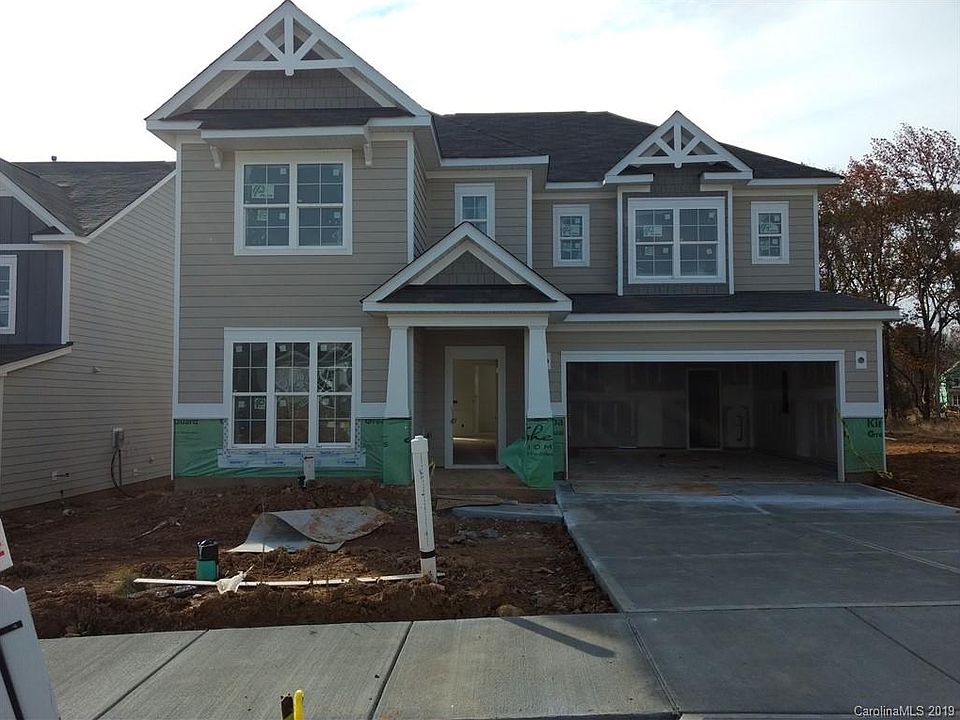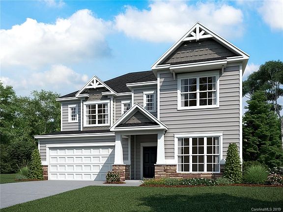 Craftsman style Delaney plan is open and flooded with natural light from the beautifully placed windows. Downstairs guest bedroom/full bath and 2 story foyer welcome you into the home. Kitchen features granite counters, white cabinets, stainless steel split cooking appliances with 36" gas cooktop, tile backsplash, and island. It overlooks the dining area and family room, which has a vaulted ceiling, large picture window, and a gas fireplace. Owner's Suite has a tray ceiling; bath has quartz counters, white cabinets, tiled shower, and separate soaking tub; 12x24" tiles. Mud Room has built-in drop zone. Secondary baths have quartz counters, white cabinets, and tiled floors. Hardwoods are throughout much of the first floor, with tile in the Laundry room. This home gets morning sun on the front and evening shade at the rear from the natural treescape for a panoramic view and privacy. Enjoy it from the rear patio! Cox Mill and Harris Rd Schools