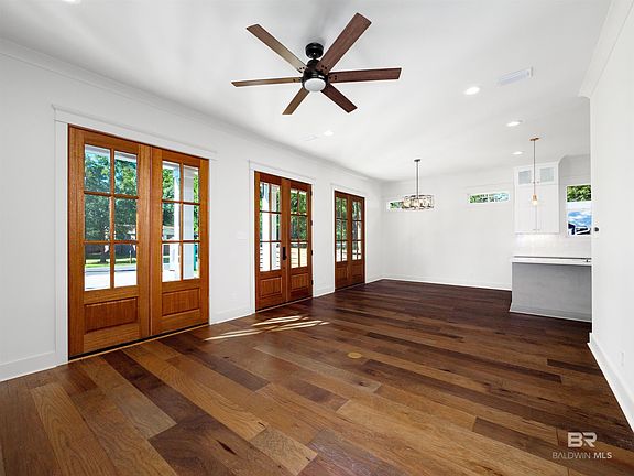 New construction home by ARK Builders in a prime location in Fairhope. Golf cart to town for dinner or to the Fairhope Pier to enjoy the sunset over Mobile Bay. This is a precious, open-concept farmhouse with four bedrooms and three and a half baths. Features include: gold fortification for enhanced strength in the home and for insurance savings, tankless gas water heater, irrigation in front and back yards and an entertainment area with a huge storage room out back. The primary en-suite is located in the back of the home and has two walk-in closets, dual vanities and an oversized walk-in shower, a linen cabinet and water closet. The laundry room has a utility sink and plenty of cabinet space. Upstairs there are three bedrooms, with one having its own private bath, while the other two share a bath. Each upstairs bedroom has walk in closets. Also, a reading/computer library is just off the hall upstairs. The listing agent is a real estate agent in the state of Alabama, is related to the builder and is a member of the selling entity.