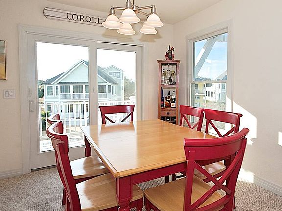 If you have been to Corolla, you have noticed the pretty, colorful homes dotting the landscape on the left as you head north. These charmers are located in The Hammocks community within The Currituck Club, a very popular vacation destination spot on the northern Outer Banks. With just over 70 homes in this neighborhood, you can see the attention to detail and feel the friendly atmosphere here. Not only do you have the wonderful amenities that are provided by The Currituck Club including several community pools, tennis courts, trolley service and more ... you are only minutes away from the outstanding beaches of Corolla and excellent shopping too. There are two large grocery stores nearby including the new Harris-Teeter where you can find ready made food, a great selection of wine and beers and outstanding customer service. Sound Spirit is very nicely decorated and welcoming. This three bedroom retreat has a Tower Room with ocean views.. The Dining Room table has seating for 6 and additional seating in the Kitchen area with 2 bar stools, perfect for the whole family. The owners have thoughtfully provided something for everyone including two tennis rackets, shuffleboard and air hockey table. There are two master bedrooms (bath attached) and one of them has a soaking tub. Speaking of tubs, there is also a hot tub which accommodates six people. There are three outdoor decks where you can soak up the sun, read a good book or just relax. Additional outdoor features and amenities include an outdoor shower and an enclosed yard. Sound Spirit welcomes pets, dogs only so you do not have to leave Spike or Barkley behind. No Smoking. Pet friendly - Dogs Only. Ask about our Military discount. All trolleys run from the Saturday of Memorial Day weekend to Labor Day. Check out The Currituck Club website for the latest activities and events! Don't forget to reserve your bike or golf cart rental from our trusted vendor before your trip starts.