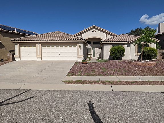 This property is located in the Hidden Vista subdivision. Interior features include Vaulted Ceilings, Dual Pane Windows, Ceiling fans, Walk-in closets and plenty of storage. This property has central AC. Property has a 3 car garage with shelving for storage. The backyard features extended patio with brick pavers, beautiful mountain views of the Rincon and Catalina Mountains. Backyard has a block wall with view fencing.