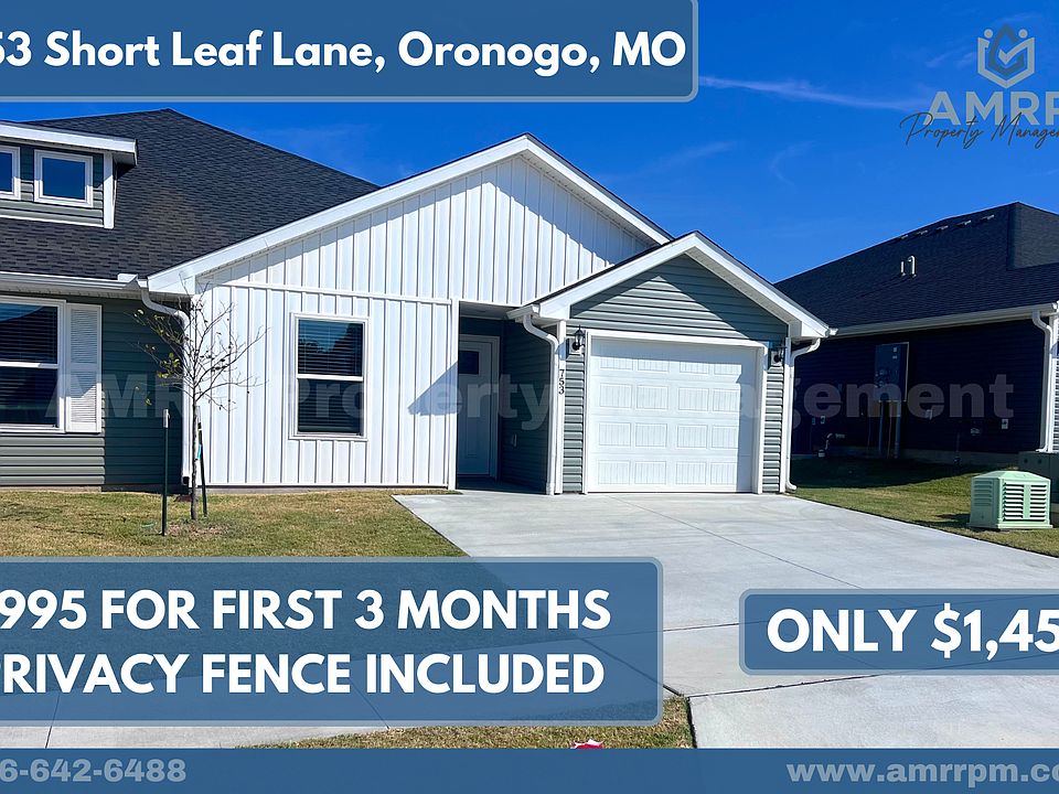 Welcome to your new home with AMRR Property Management, featuring 1,445 square feet of living space, 3 bedrooms, 2 baths, and a 1 car garage. This amazing home is located in a quiet development called Hawthorn in Oronogo, Missouri, and it has everything you need in a rental. The kitchen features a stove, microwave, dishwasher, custom cabinets, a stainless steel fridge, and vinyl flooring that extends throughout the home, which means NO carpet whatsoever. The backyard includes a relaxing covered patio and a spacious grass backyard. Length of lease can be between 12 and 24 months. Utilities are ALWAYS the responsibility of the tenant, unless otherwise advertised. Tenants are responsible for all lawn care and maintenance during tenancy, unless otherwise advertised. Security deposits are required for most properties, but we offer various deposit amounts and payment options, which are determined during the application process. Application fees are generally $45 but few can waive the application fee if an application is filled out within 24 hours after you complete a scheduled showing with one of our leasing agents. Normally, only 2 pets are allowed per property and we charge a one-time pet fee of $250 per pet, with no breed restrictions or weight limits, unless otherwise advertised. No smoking of any kind is allowed inside the property or garage.