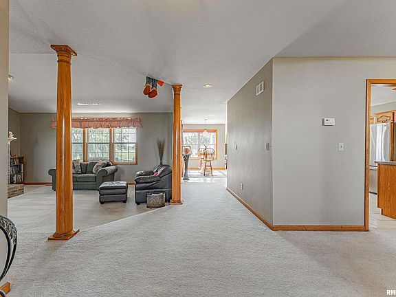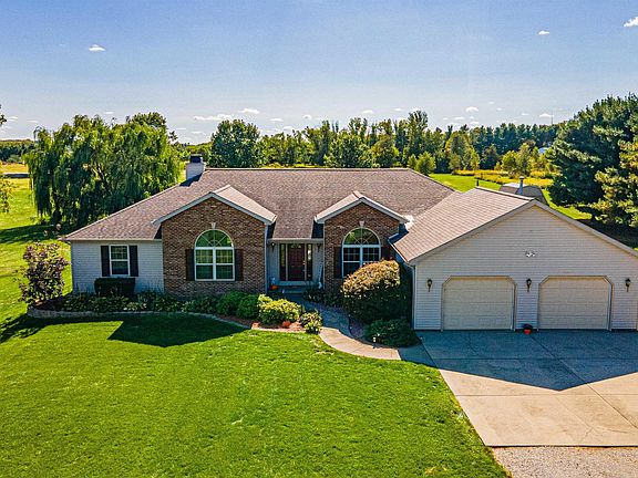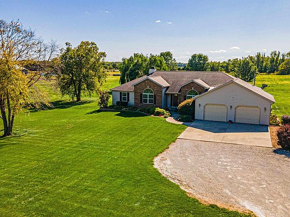 Exquisite and elaborate custom designed and constructed nearly 2,700 square foot 3-4 bedroom, 2.5 bath brick and vinyl sided ranch style home perched upon 5.00 choice acres within West Lincoln-Broadwell school district just minutes from interstate access as well as the historic downtown district! The fascinating and well crafted interior layout boasts an inviting foyer, sunken living room with columns, cathedral ceilings, and a central gas log fireplace, gracious 12X14 den with a double door entry in addition to a trey ceiling, formal dining room with ample natural light and trey ceiling, equipped tiled kitchen with a breakfast bar, 8X13 dining nook, and an adjacent walk-in pantry, conveniently situated hall laundry as well as half bath areas, expansive rear family room with remarkable floor space, fantastic rear facing windows, and cathedral ceilings, and a sought after split bedroom concept. The master wing is host to a large bedroom with a private full adjacent bath along with a walk-in closet -- the secondary bedroom wing boasts two additional bedrooms in addition to a full hall bath. Enjoy the outdoors? You will love the 2009 constructed partially covered multi level rear deck! Property also features a 24X28 2+ car attached heated garage, rear storage shed, six panel interior doors, architectural roof (2009), newer furnace (2020), and new well pump (2023). All interior appliances to remain. Natural gas to property -- NO propane! This rare rural find is an absolute gem!