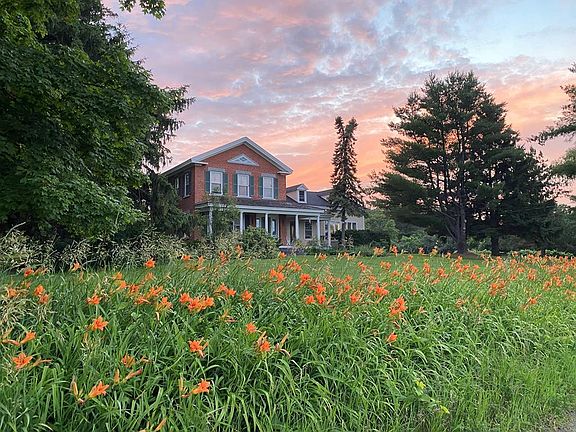 Beautiful 3-acre corner lot in lovely Country Setting. Spacious yard for the gardening enthusiasts. There are 4 varieties of grapevines, rhubarb plants, a red currant bush, and raspberries. Spacious kitchen has Quaker Maid Cabinetry, ample drawer and cabinet storage space, ceramic tile countertop work area, large pantry cabinet, Mexican tile floor with in-floor radiant heat, under cabinet lighting, microwave/convection oven, and 6-burner professional Viking Range. Other features include antique heartwood pine flooring and characteristic crown molding. A brick fireplace in the living room adds to the ambience. Large, covered front porch with fiberglass columns. Total home Generac natural gas generator. There is a grid-tied, net metered photovoltaic system (39 solar panels; 167 W apiece) on a stationary mount. Arlo Security Cameras, most furniture, surround sound system, TV are all negotiable. Treehouse is old and unsafe. Barn sold 'as is'. Close proximity to Hamlet of Peru Amenities.